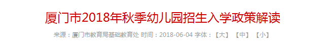 《厦门市2018年秋季幼儿园招生入学政策解读》
