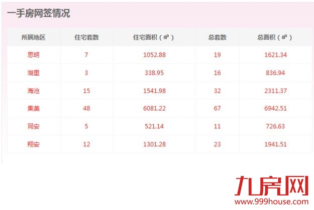 从各区的一手住宅成交数据来看,集美区成交48套,位居全市一手住宅成交排行榜榜首;海沧区成交15套,位居排行榜第二位;翔安区成交12套,位居排行榜第三位。
