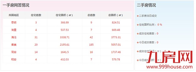 2015年8月30日,厦门全市二手房成交无数据,二手房成交住宅套数无数据,一手住宅成交76套,环比下跌35.04%。其中,思明区3套,湖里区4套,海沧区31套,集美区20套,同安区14套,翔安区4套。