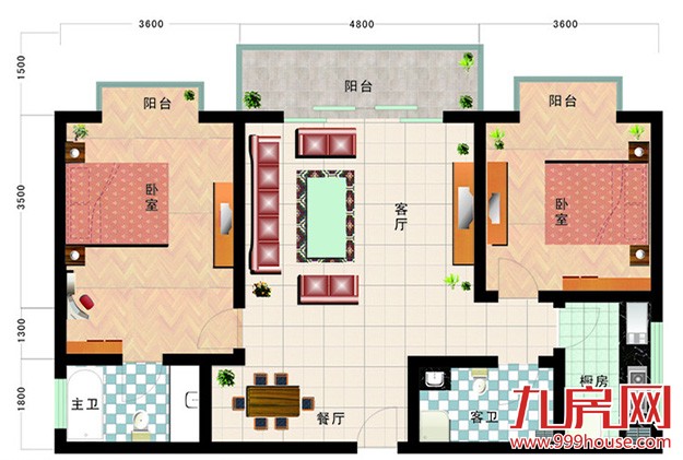 辅助区:对以上两部分区域功能起辅助作用,如厨房、卫生间、贮藏室、阳台等。