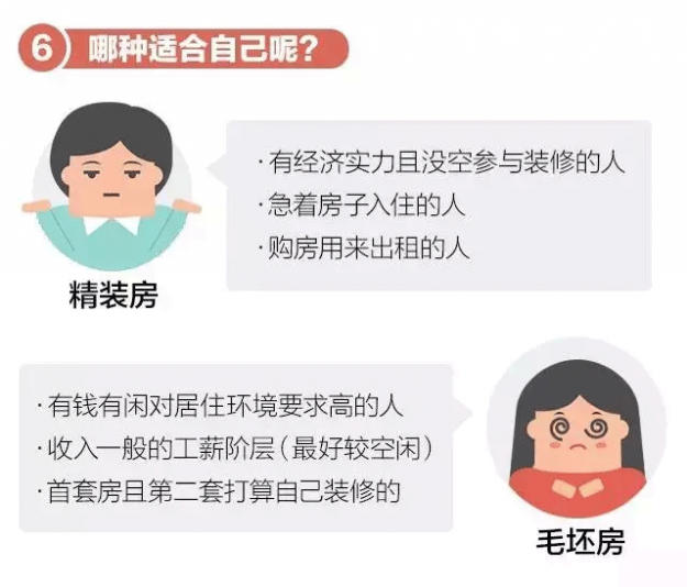 买房到底毛坯房好还是精装修的好?我们知道,毛坯房可以按照自己的意愿选择喜欢的装修风格,有人认为买房是人生中的大事,细到一颗螺丝钉也要自己亲自把关。但在如今追求省时省力的高速时代,精装房日渐成为买房的趋势,但是精装房相对来说较高的价格也让很多人望而却步。精装VS毛坯,自己对号入座吧!