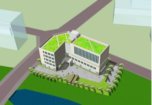 地上部分将划分为南北两区,通过连廊连接。南区一至五层为文化中心;北区一、二层及三层部分为体育健身中心,三层至五层为区级老年(老干)活动中心。
