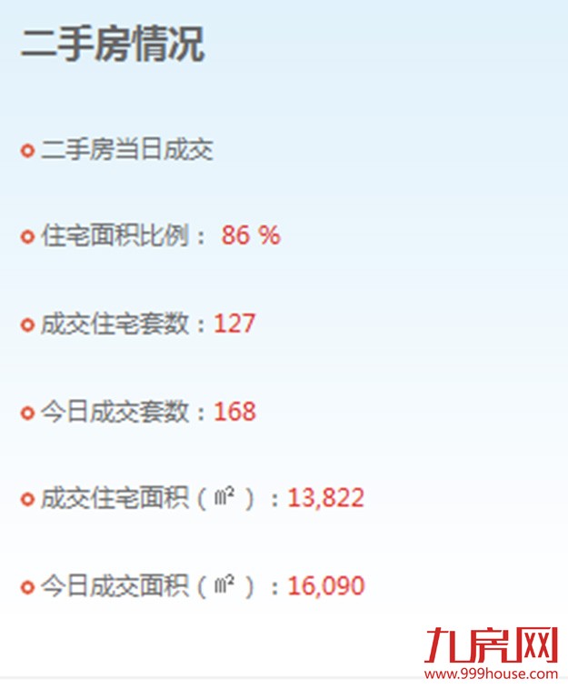 2015年9月22日,全市二手房成交套数为168套,二手房成交住宅套数成交127套,一手住宅成交71套,环比下跌10.13%。思明区1套,湖里区3套,海沧区18套,集美区22套,同安区18套,翔安9套。