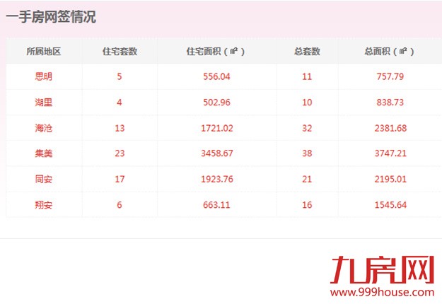 从各区的一手住宅成交数据来看,集美区成交23套,位居全市一手住宅成交排行榜榜首;同安区成交17套,位居排行榜第二位;海沧区成交13套,位居排行榜第三位。