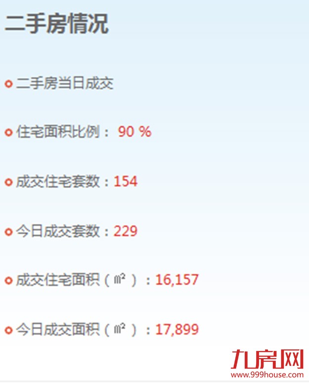 2015年9月24日,全市二手房成交套数为229套,二手房成交住宅套数成交154套,一手住宅成交68套,环比上涨23.64%。思明区5套,湖里区4套,海沧区13套,集美区23套,同安区17套,翔安6套。