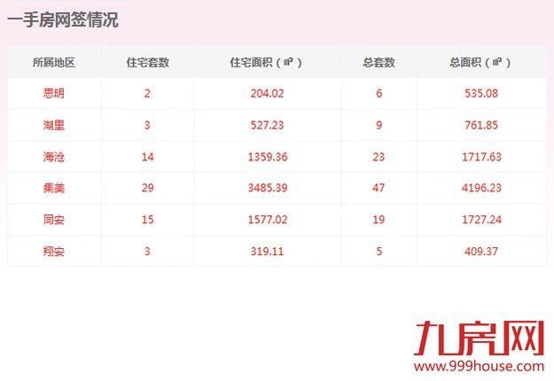 从各区的一手住宅成交数据来看,集美区成交29套,位居全市一手住宅成交排行榜榜首;同安区成交15套,位居排行榜第二位;海沧区成交14套,位居排行榜第三位。