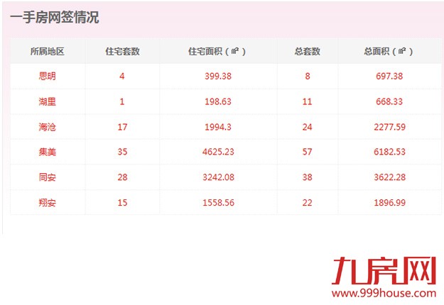 从各区的一手住宅成交数据来看,集美区成交35套,位居全市一手住宅成交排行榜榜首;同安区成交28套,位居排行榜第二位;海沧区成交17套,位居排行榜第三位。