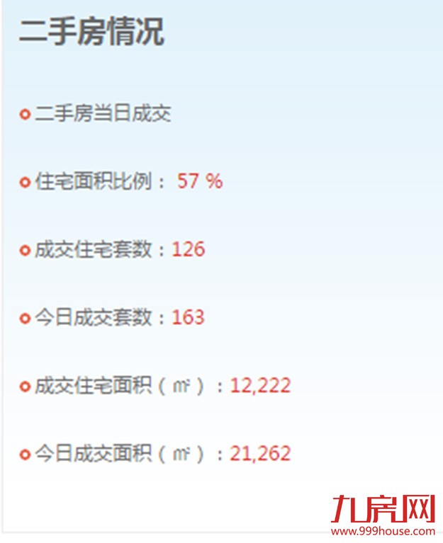 2015年10月13日,全市二手房成交套数为0套,二手房成交住宅套数成交0套,一手住宅成交66套,环比下跌34.00%。思明区2套,湖里区7套,海沧区13套,集美区24套,同安区15套,翔安5套。