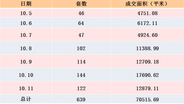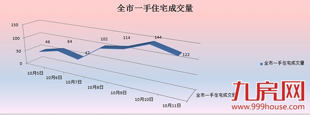 本网根据官方数据统计,本周(10月5日—10月11日)全市一手住宅成交639套,环比上涨17.90%,日均成交91套。