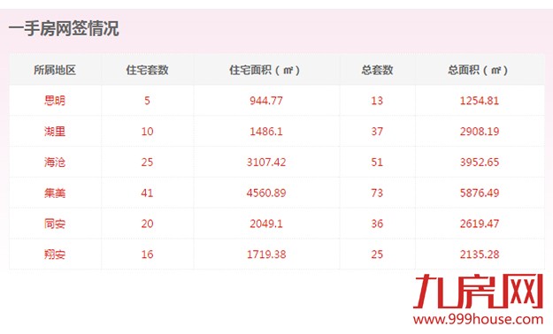 从各区的一手住宅成交数据来看,集美区成交41套,位居全市一手住宅成交排行榜榜首;海沧区成交25套,位居排行榜第二位;同安区成交20套,位居排行榜第三位。