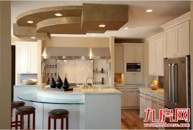 8、冰箱:一定要事先设计好冰箱的位置,以使“工作三角”设计合理。注意不要让冰箱紧挨着水槽,以免溅上水。
