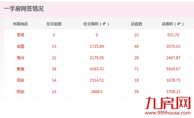 从各区的一手住宅成交数据来看,集美区成交38套,位居全市一手住宅成交排行榜榜首;翔安区成交23套,位居排行榜第二位;海沧区成交21套,位居排行榜第三位。