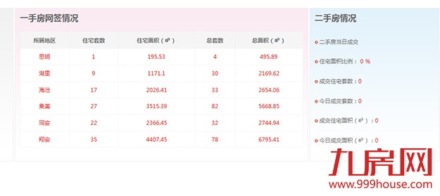 2015年10月31日,全市二手房成交套数为0套,二手房成交住宅套数成交0套,一手住宅成交111套。思明区1套,湖里区9套,海沧区17套,集美区27套,同安区22套,翔安35套。