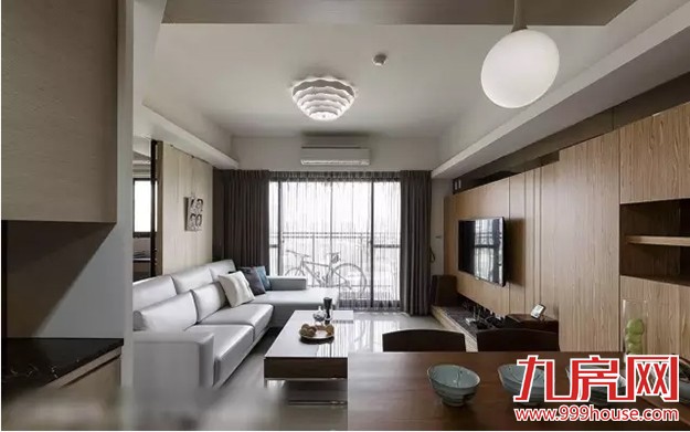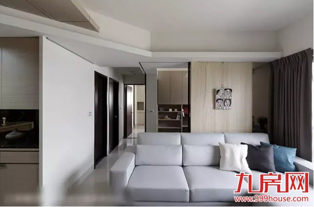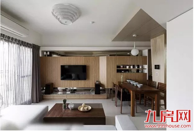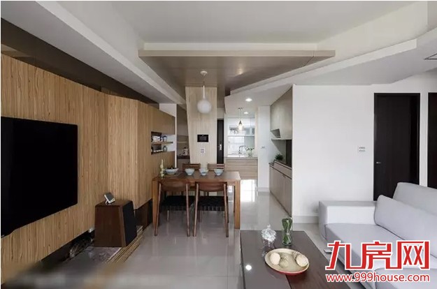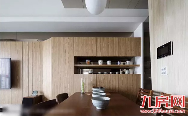 ★★以浅色梧桐木作為屏风,避免入门见厅的尷尬,侧旁则以茶玻保留视线的穿透性。