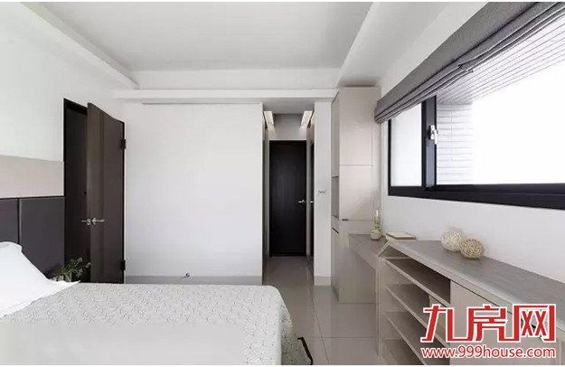 ★★考量卧室的採光需求量,设计师局部封起床头对向的完整採光面,增设收纳矮柜与梳妆台机能,加强空间实用性。