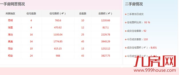 2015年11月5日,全市二手房成交套数为206套,二手房成交住宅套数成交158套,一手住宅成交92套。思明区4套,湖里区4套,海沧区16套,集美区34套,同安区10套,翔安24套。