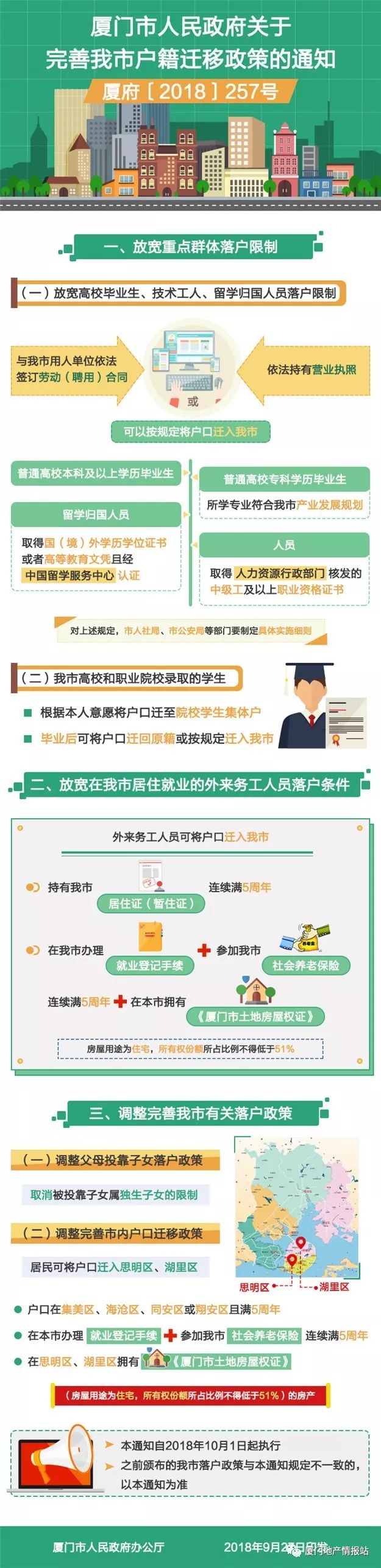 2018年9月,厦门市人民政府针对不同人群执行不同的落户政策↓↓↓