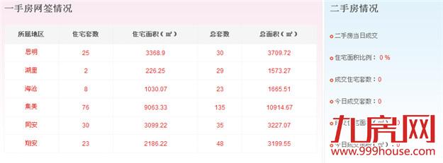 2015年12月5日,全市二手房无成交。一手住宅成交164套。思明区25套,湖里区2套,海沧区8套,集美区76套,同安区30套,翔安区23套。