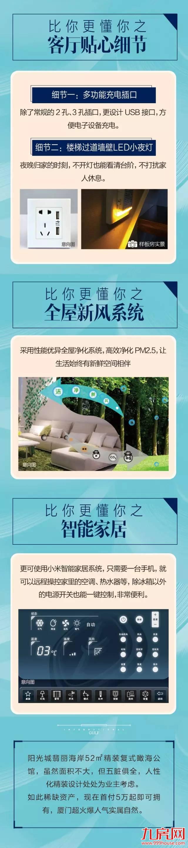 超阔绰弧形一线观景面,已是厦门罕见之作!更有8大贴心精装系统,成就全面家居解决方案。2015厦门最具收藏价值52㎡瞰海公馆,人气爆棚的秘密都在这里了!