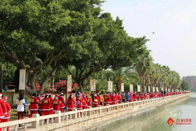 募捐活动结束后,筼筜街道党工委书记陈向忠先生与信和集团营销及市场(中国)高级经理陈晓冬先生共同摇响圣诞铃,来自各行各业热心人士组成的“圣诞老人”队列闻铃出发,一路经过西堤咖啡街、白鹭洲路、白鹭洲公园、湖滨西路,全程约5公里。在厦门筼筜湖畔独特的环湖木栈道上,奔涌着红色的海洋,传递着厦门市民快乐健身,快乐做公益的主旨。