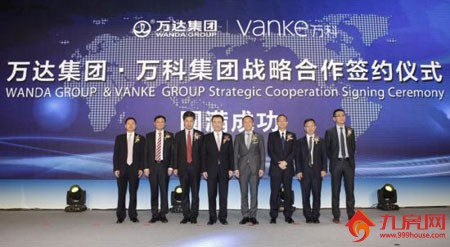 5月14日上午10时,内住宅龙头万科企业股份有限公司,与商业地产龙头大连万达集团股份有限公司在京举行签约仪式。宣布了万达、万科未来将在国内和海外市场,联合拿地、合作开发。由万达投资项目中商业部分,万科开发项目中住宅部分。 根据协议,万达和万科将共同组成由双方集团高层担任领导的联合协调小组,互相交流项目合作信息;双方将长期进行合作;由于万达和万科都有海外发展计划,未来双方的合作不仅限于国内,也将在全球展开。