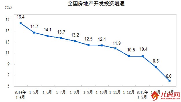 国家统计局发布《2015年1-4月份》,最新数据显示,今年1~4月,全国房地产开发投资同比增长6.0%,比一季度回落2.5个百分点。但随着多项调控政策效果逐渐显现,房地产市场呈现出一些新的变化,商品房销售面积和销售额降幅收窄。