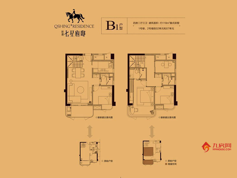 B2户型为126㎡复式四房。该户型为【新景七星府邸】最具颠覆创意的户型,首创下沉式复式户型,让您体会都教授一般的居住感受。独享圆弧豪华观景台,超凡气派,品位优雅生活。