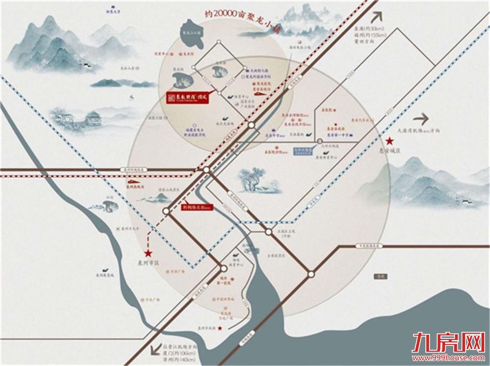 | 自驾 | 距惠安高铁站仅300米/紧邻聚龙大道,咫尺大岭头隧道/来往于泉州市中心仅需15分钟/通过高铁,至福州只需50分钟,厦门只需30分钟,莆田仅需20分钟。 |